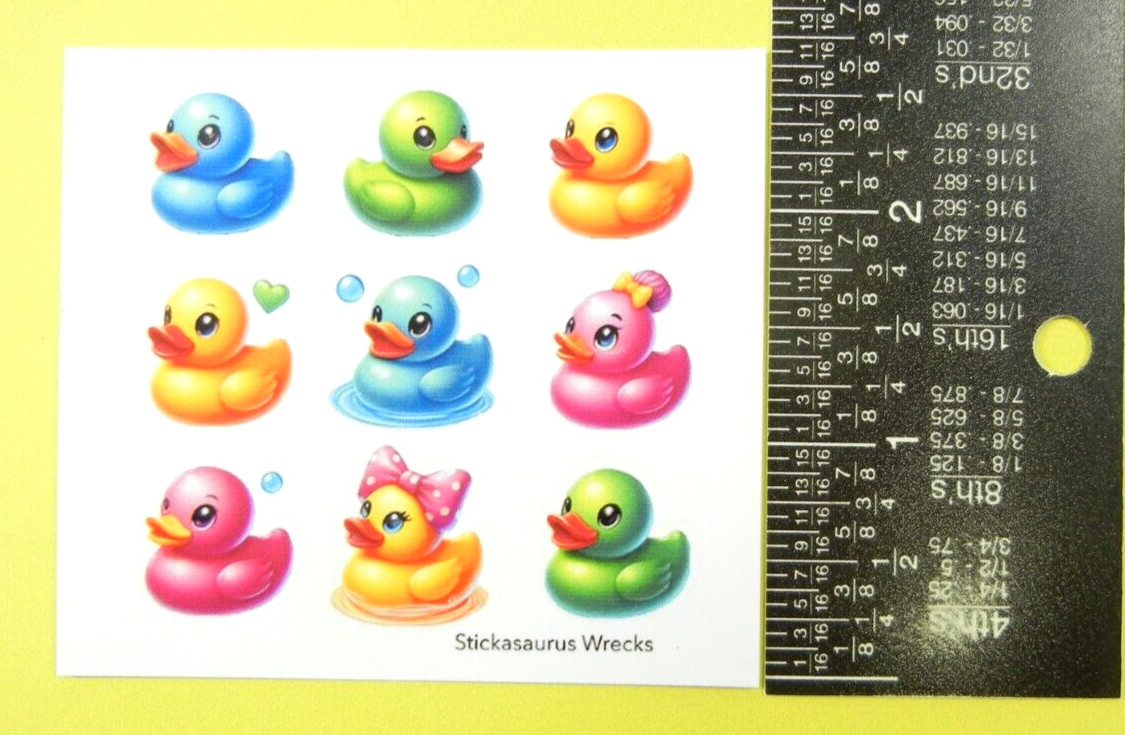 Sticker Sheet Is New. Sticker Sheet Is A Mini Sticker Sheet. Please View Photos For Measurements. Sticker Theme Is Rubber Ducks. Sticker Brand Is Stickasaurus Wrecks. Stickers Are Hand Created With Our Own Styles, Printed & Cut By Us Here At Stickasaurus Wrecks So You Can Be Sure These Stickers Have Had Much Care Put Into Their Creation. We Hope You Love Them As Much As We Do.