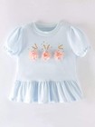 Children's Floral Applique Puff Sleeve Top with Ruffle Hem
