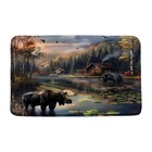 Rustic Cabin Bath Mat Forest Wildlife Bear Deer 18"x30", Brown Orange Green