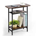 Slim 3-Tier Narrow Side Table with Magazine Holder, Rustic Brown End Table for S
