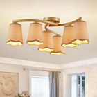 Boho Rattan 6-Light Chandelier - Rustic Semi Flush Mount Ceiling Fixture