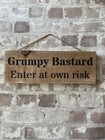Handmade funny hanging wooden sign - Grumpy Bastard Enter at own risk