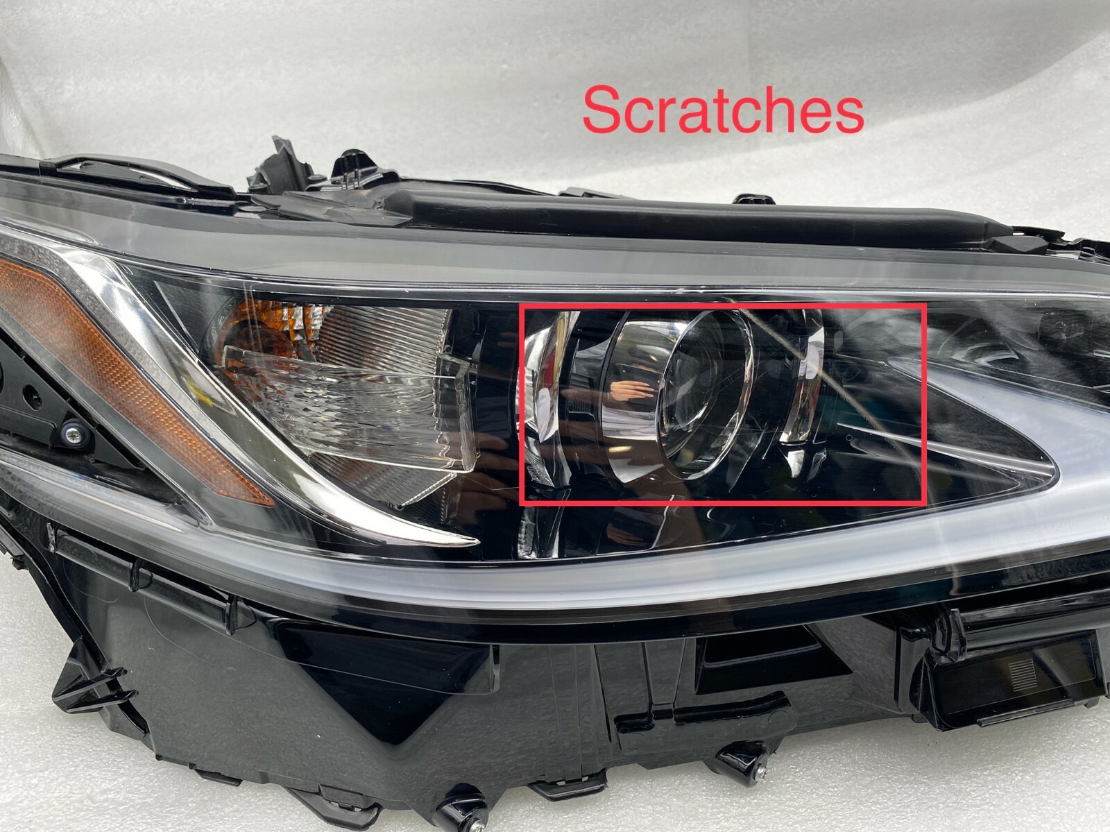 point out flaws and yellow tape to protect light from storage dust
