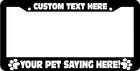 CUSTOM WORDING PET DOG CAT ALL BREEDS PAW PRINT License Plate Frame personalized