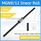 MGN9H MGN12H Miniature Linear Rail Guide 200mm-650mm+ Slide Block Black CNC DIY