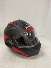 Scorpion motorcycle modular helmet, size medium, red, black and grey.