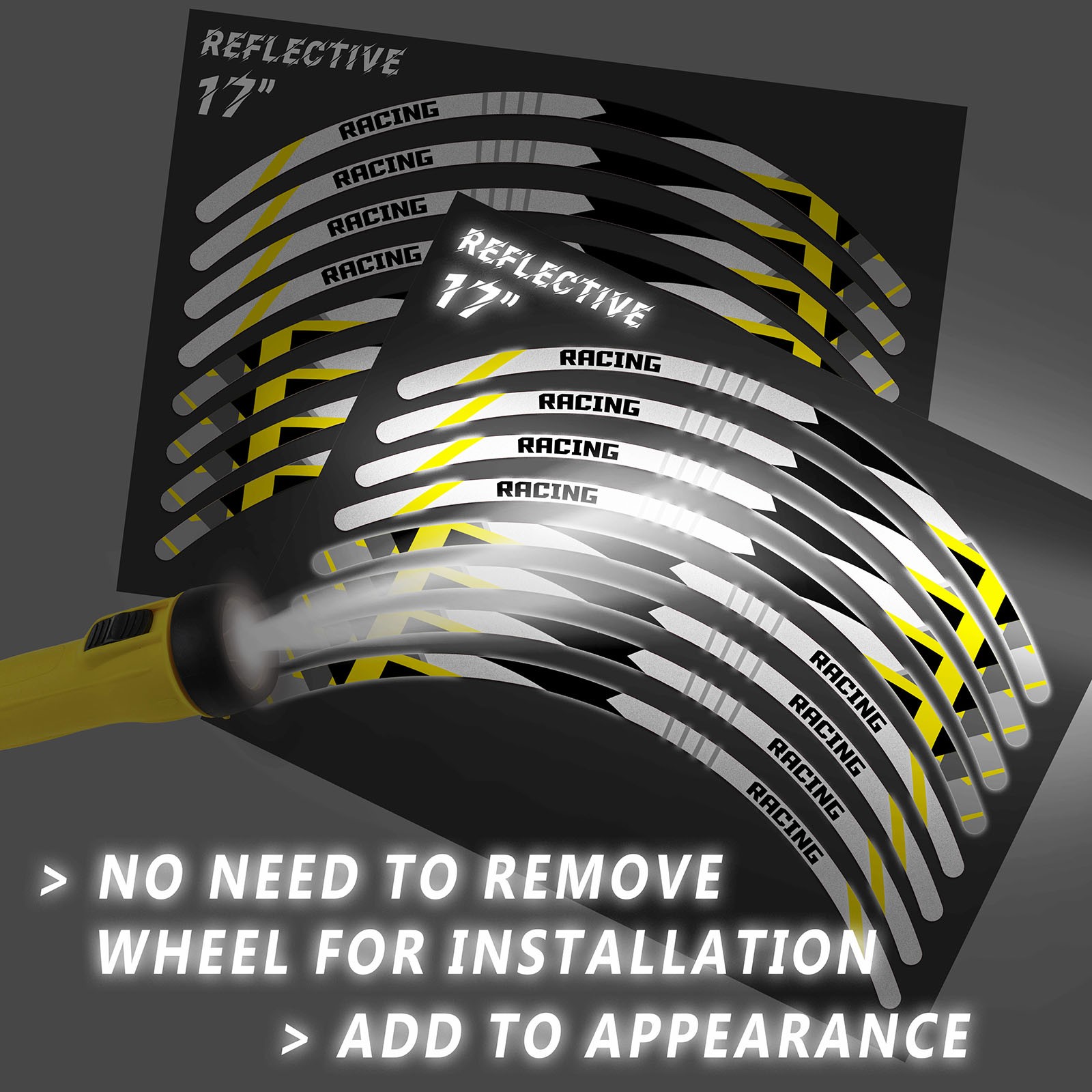 17 INCH REFLECTIVE RIM STICKERS KIT FOR FRONT & REAR WHEELS --- SH23