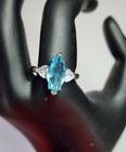Silver Tone Marquis Cut Aquamarine Color Clear Cz Ring Size 7.25