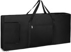 This soft case for 61-note keyboards is constructed of wood-framed walls and an outer 600 denier nylon covering with a completely padded interior. Two large padded straps provide protection and security with in-line skate wheels, and legs with an expanding stabilizer for standing the case on its end. The back and side of the case features rails to protect the case when loading and unloading. Two large pouches on the lid offer storage of cables, pedals and other accessories. Convenient straps provide for a hands-free carry and for connection to other bags.