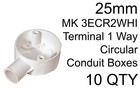 10 Pack 25mm 1 Way Terminal Circular Conduit Boxes 3ECR2 White MK Electric