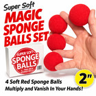 4 SPONGE BALLS RED Magic Trick Close Up Clown 2" Foam Magician Set Appear Vanish