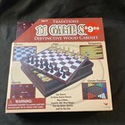Cardinal Games Traditions 11 Game Set Chess Distinctive Wood Cabinet Nib