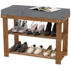 Domax Shoe Rack Bench for Entryway, 3-Tier Bamboo Shoe Holder with Cushioned ...