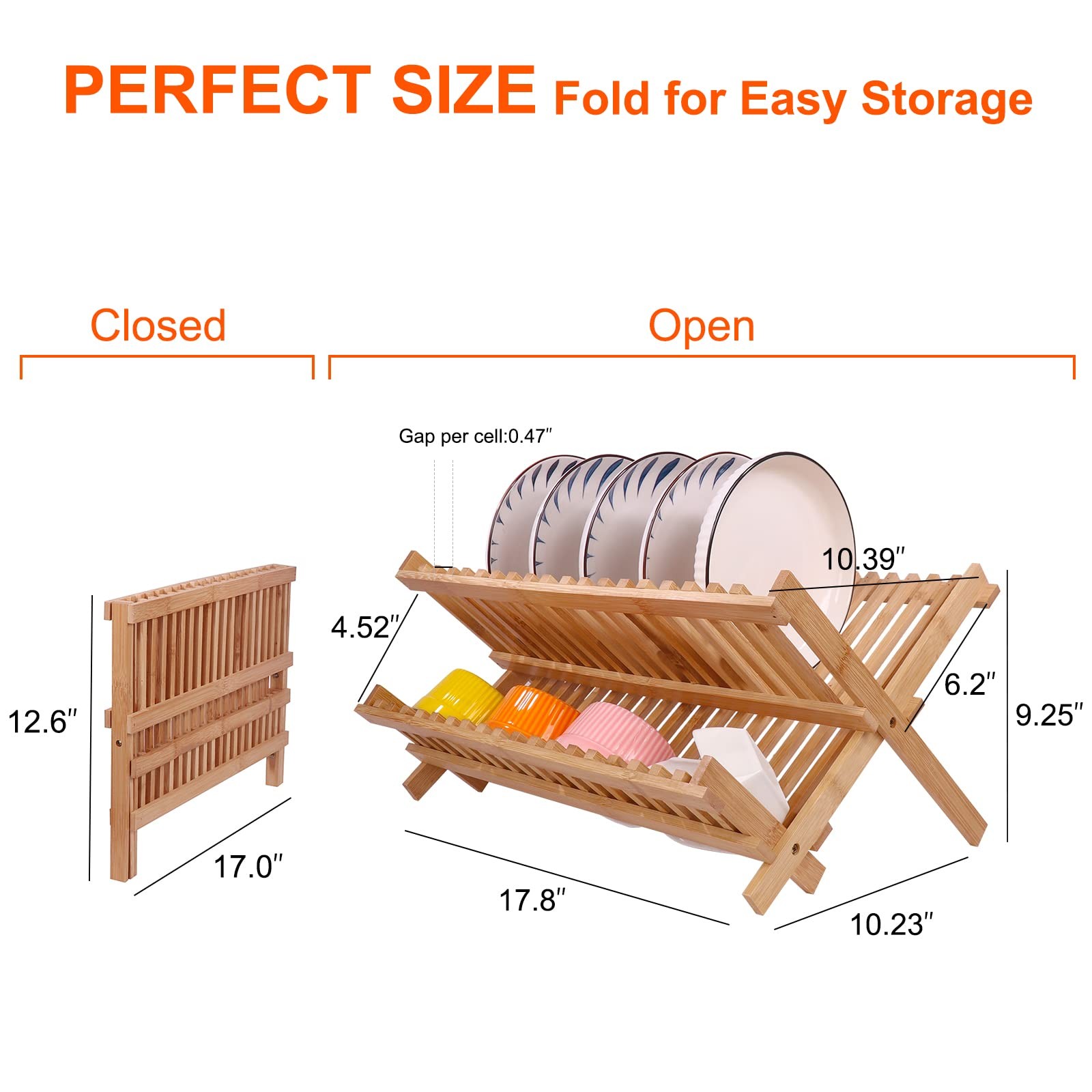 Easy Clean & Maintenance: The smooth, oil-finished bamboo surface prevents water marks and stains from dishes. Simply wipe clean with a damp cloth. For deeper cleaning, use mild soap and water. Ensure the rack is fully dry before collapsing or storing.
