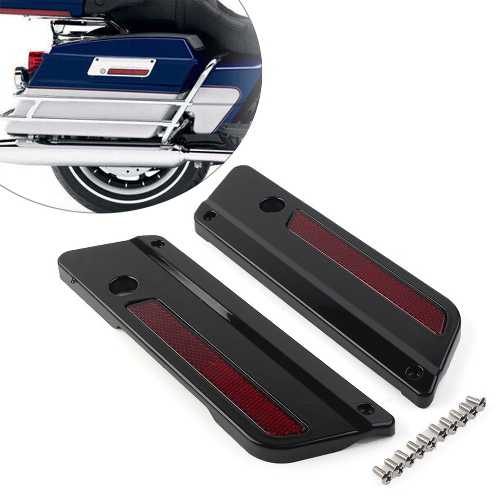 Saddlebag Latch Plate Cover With Red Reflectors For Harley Touring 1993-2013