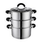 3 Tier Multi Layer Stainless Steel Steamer Pot With Stackable Pan Glass Lid