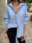 VERY J Full Size Oversized Striped Button Down Shirt Top Plus Size