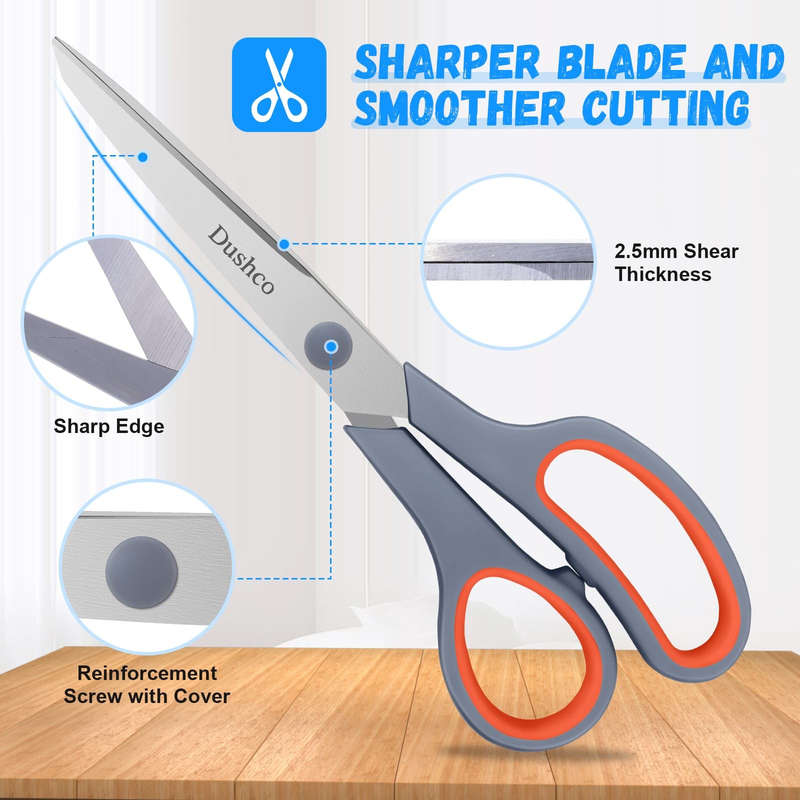 Ultra Sharp Scissors:In order to achieve the performance you expect, each pair of scissors is made of high-density premium stainless steel blades,which are three times harder than ordinary stainless steel, stronger and sharper.