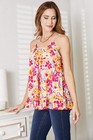 Double Take Floral Scoop Neck Ruffle Hem Cami