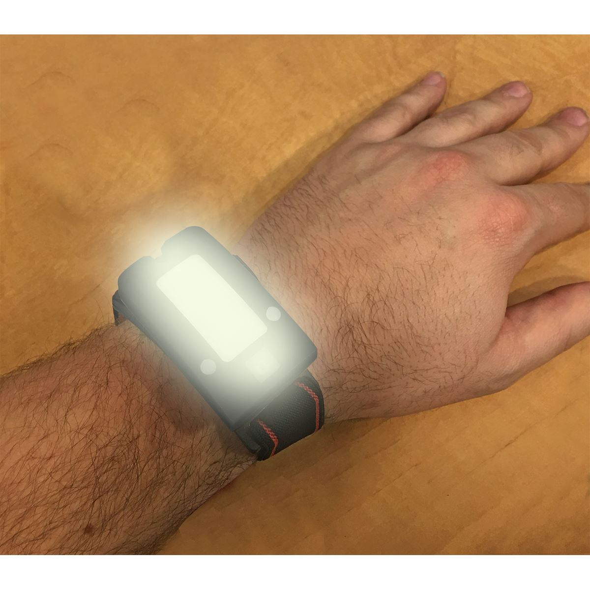 New design 360 multifunction COB LED rechargeable head torch. Headband can also be used as a wristband. When the band is removed, the worklight can be used as a clip light, or as a stand-alone table light. One button includes five different lighting options. First press is 100% white light, second dims to 40% white light, third is red warning light (1W COB LED) and fourth is red warning flash, which makes it ideal for cycling. Holding the button enables auto-sensor function to switch on/off just by waving hand in front. Adjustable head/wristband and foam brow for added comfort. Powered by 3.7V 0.5Ah Li-Poly battery. Supplied with micro USB charging cable.