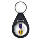 Purple Heart Medal Black Leather Keychain Silver Keyring Military Gift