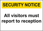SECURITY NOTICE ALL VISITORS MUST REPORT TO| Laminated Vinyl Decal Sticker Label