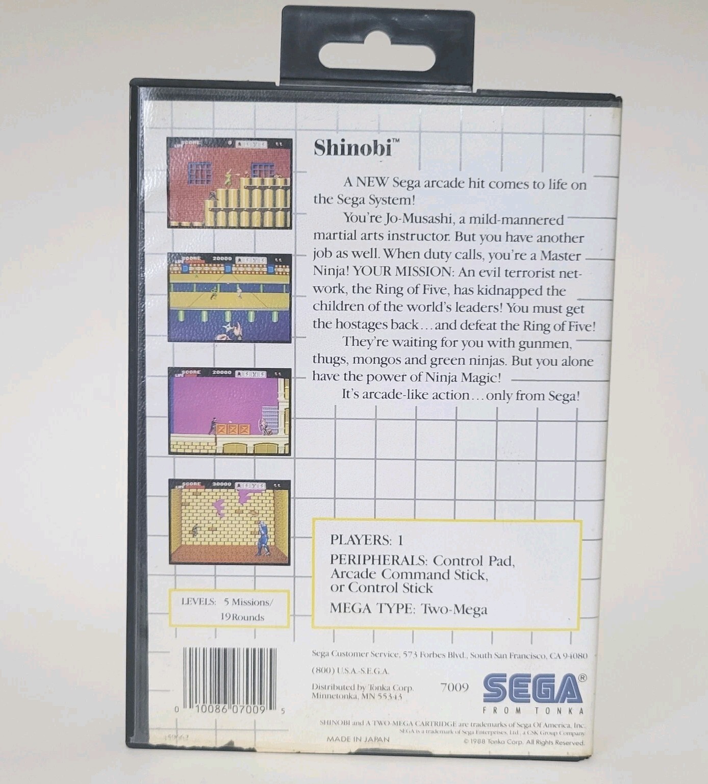 Shinobi Sega Master System 1988 Complete CIB Tonka Release Tested (021)