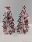 Peppermint Ribbon Tree Red White Glitter Christmas Decor Tabletop Lot of 2