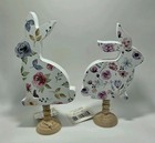 Easter Bunny Rabbits Floral Hand Painted Ceramic Set Of 2 Seasonal Decor Pre-own