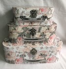 Grey Pink Floral storage suitcases : set of 3