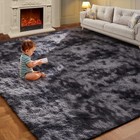 AMTOVO Shag Area Rugs for Living Room, 5X7 Black and Grey Large Fluffy Cleara...