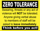 Sign Adhesive Sticker Decal Notice Business Zero Tolerance Abuse Towards Staff