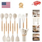 12-Piece Silicone Kitchen Utensil Set Non-Stick Cooking Tools Wooden Handles