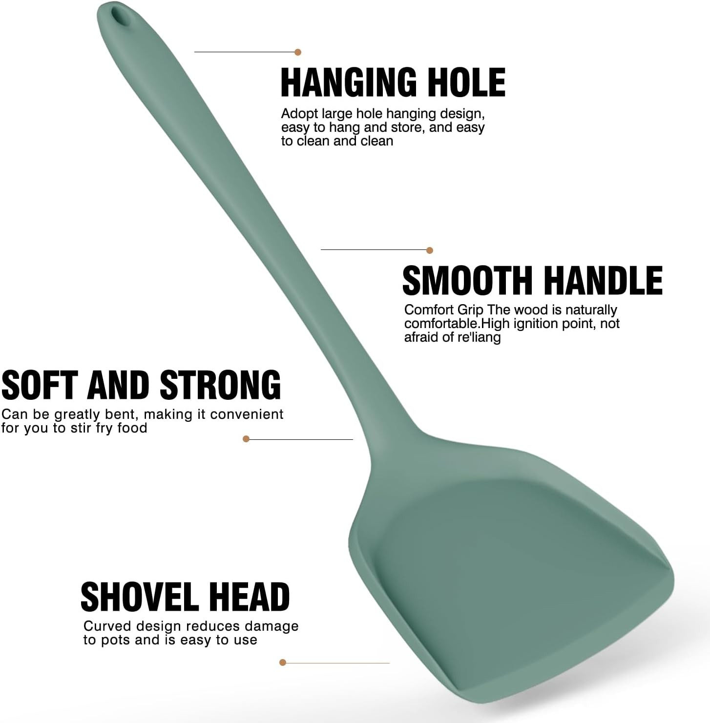 - Nonstick Cookware Friendly: The thickened silicone head of this silicone kitchen utensils set is soft and elastic, ideal for silicone utensils for cooking with nonstick pans, makes close contact with the pan surface without scratching the nonstick coating, thus extending the pan's service life, the silicone handle with moderate size offers a comfortable grip and blocks heat transfer; making it easy to flip, strain dishes or serve soup