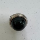 Cocktail Ring Black Silver Tone Stretch Adjustable Big Gaudy Dome Textured