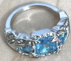 Blue Stone Ring/ Size 8/ Silver Tone/ Rhinestone Crystals