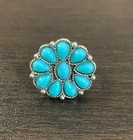 Silver Tone Southwestern Style Round Floral Faux Turquoise Fashion Ring Size 7
