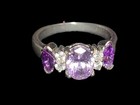 Silver Tone Purple Simulated Amethyst Crystal Rhinestone Ring Size 8.75