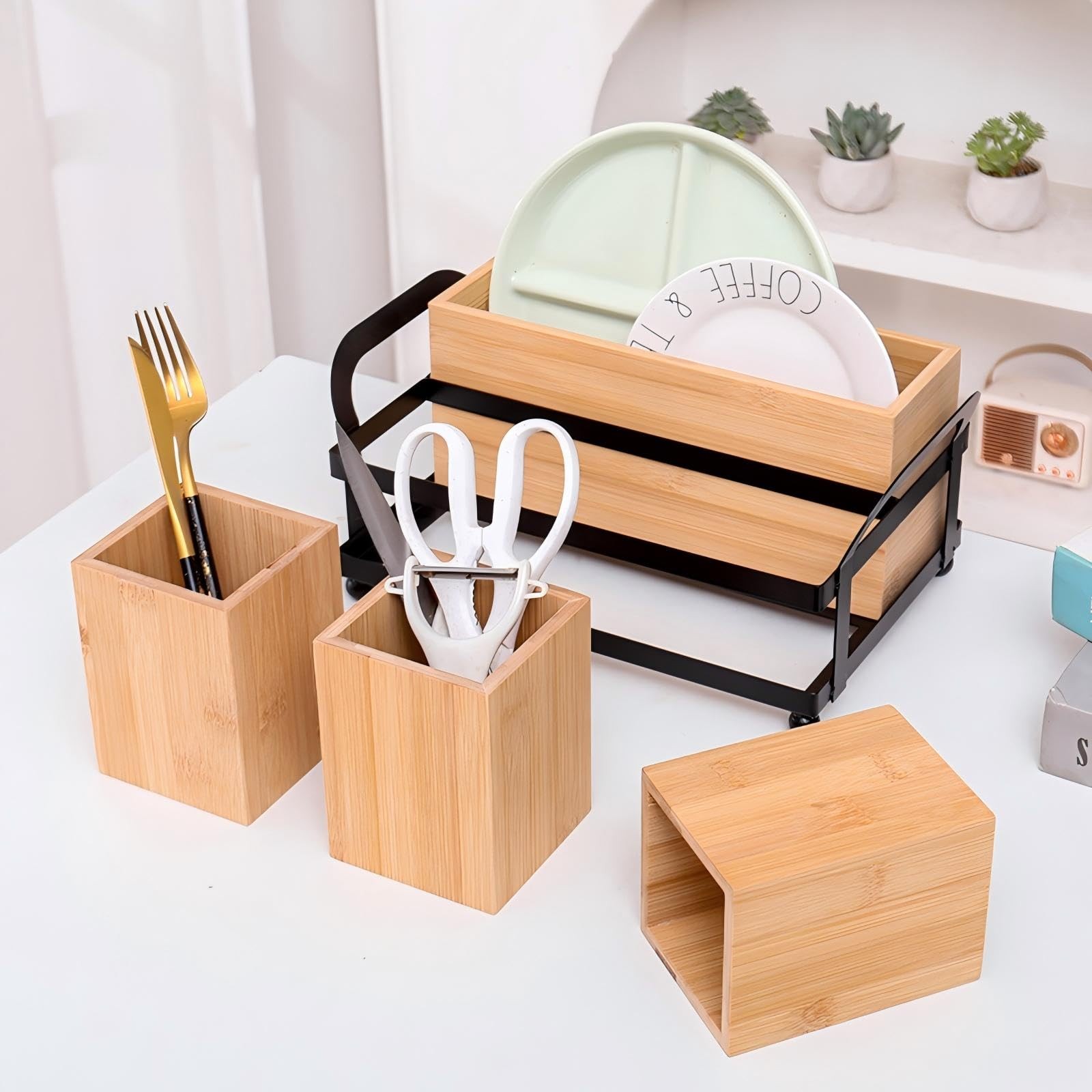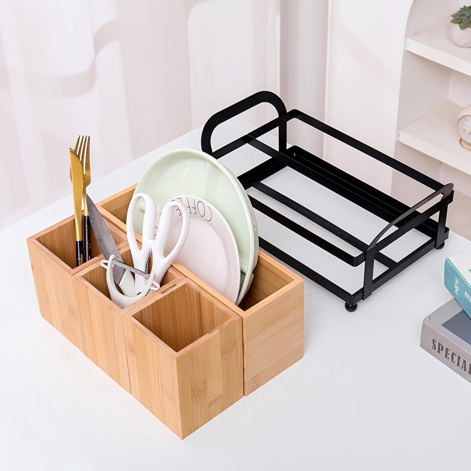 Multifunctional :Not only for kitchen flatware storage,such as napkins,paper plate, knives, spoon, fork, skimmers, peelers, bottle openers, or any other kitchenware,but also great for organizing bathroom,office,dressing table,such as remotes, pens, crayons, scissors