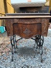 Antique Vintage Singer sewing machine in cabinet. Treadle Table Wrought Iron.