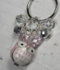 Pink Owl Cluster Keychain Ceramic Crystal Beaded Handmade Split Key Ring New
