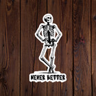 Skeleton sticker vinyl decal never better funny dark humor black laptop mug