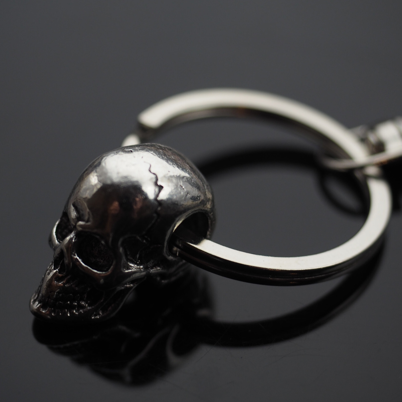 Vintage Silver Skeleton Bones Skull Charm Pendant Key Ring Gift
