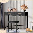 Modern Vanity Desk Stool with 2 Drawers Black Home Office Study Computer Table
