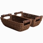 Handwoven Small Wicker Baskets, Round Paper Rope Storage Baskets with Wooden ...