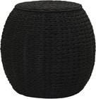 Handwoven Paper Rope Barrel Wicker Storage Basket Side Table, Black