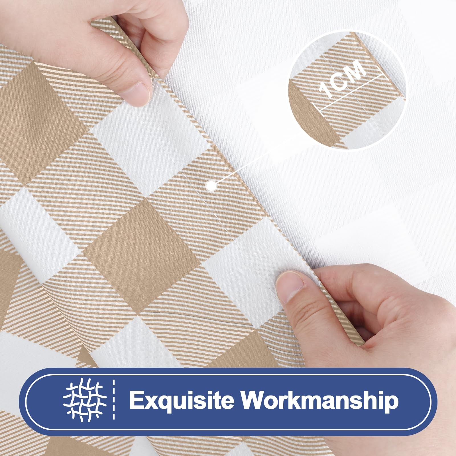 [Waterproof & Spillproof] Our tablecloths feature a double-sided waterproof design, with a spill-proof surface and an additional inner TPU layer that causes spills to bead up instead of soaking in.,[Windproof & Elastic Edge] Smiry picnic tablecloth's elastic edge ensures a snug fit, eliminating the need for clips or clamps. It stays securely in place, even on breezy days, for hassle-free outdoor meals.,[Sturdy & No Tear] Our fitted table cover is crafted from high-density polyester fabric, which offers tear resistance, ensuring it can withstand regular use without ripping or fraying.,[Washable & Easy Clean] You can toss this table cloth in the washing machine for easy cleaning. Just remember to use cold water, steer clear of bleach, and choose the gentle cycle for optimal care. Creaseless after ironing.,[Versatile & Elegant] Our tablecloths feature a classic buffalo plaid design, and the packaging includes two tablecloths to meet your diverse needs—from casual family dinners to formal celebrations, including picnics, camping, BBQs, dinners, parties, banquets, birthdays, weddings, restaurants, and both indoor and outdoor settings.