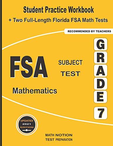The Title is FSA Subject Test Mathematics Grade 7: Student Practice Workbook Two Full-Length Florida FSA Math Tests