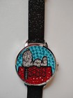 Snoopy On Dog House Cartoon Leather Band Wrist Watch