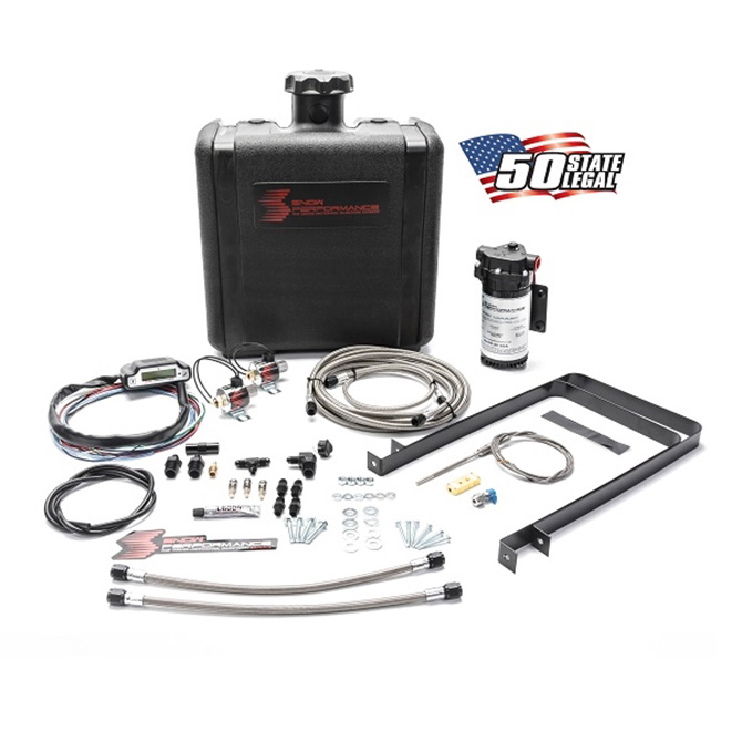 Diesel Stage 3 Boost Cooler(tm) Water-Methanol Injection Kit Snow Performance has combined performance, quality, and ease of installation in this new water-methanol injection kit designed for all turbo diesel owners who demand colder EGTs while towing heavy loads. The Diesel Stage 3 Boost Cooler utilizes a 2D mapped controller that commands injection based on boost pressure and EGTs (exhaust gas temperatures) to maintain extremely cold air inlet temperatures, 100-300 EGT decreases, decreased emissions, cleaner engine components, and increased fuel economy all while giving 65+ HP to help pull large hills with easy effort while towing. A must have for the diesel enthusiast that is concerned about the longevity of his truck that sees heavy towing. None invasive, the Diesel Stage 3 Boost Cooler controller is designed to mount on the steering column or the dash so no drilling/marring of the interior needs to take place or additional gauge pods need to be purchased. Functions as a boost gauge, water-meth controller and EGT monitor all in one! Concerned about warranty? The Snow Performance Stage 3 does not leave a signature on the vehicle leaving your diesel truck with its warranty intact. 7 Gal Tank included for trip ready installation. Recommended for all daily driven diesel vehicles that see heavy towing where EGTs become dangerously high. Need a CARB E.O.# for your state? No problem! This system is 50-State Legal! (C.A.R.B E.0.# D-723).